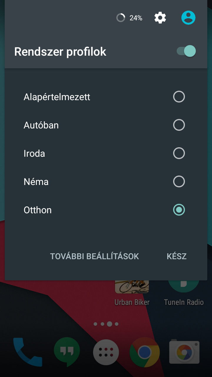 - Rendszerprofilok, WIFI, BT magától kapcsol más-más üzemmódba, nogyon fasza.