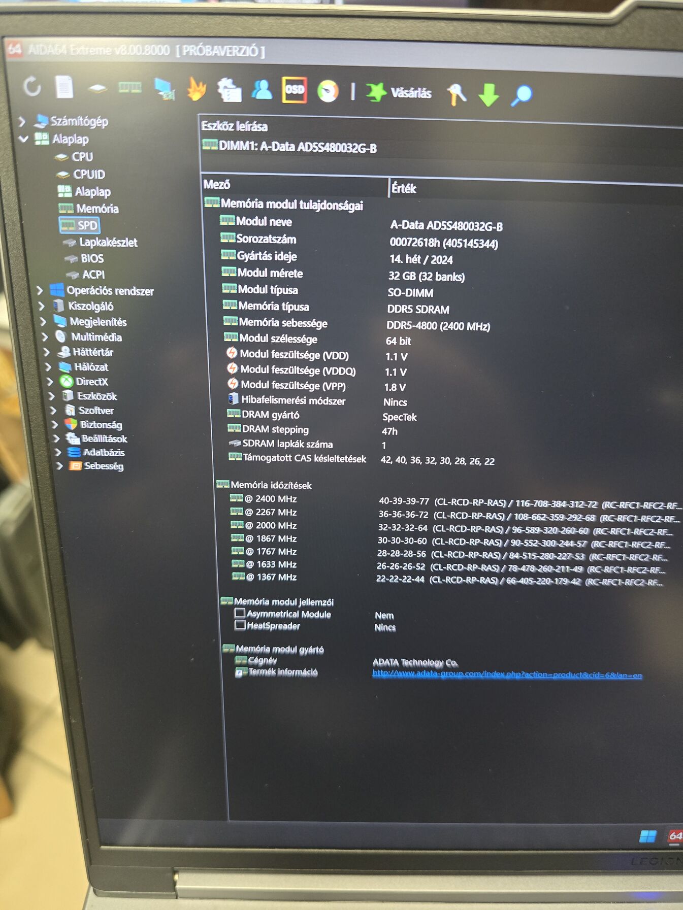 Most van benne egy 32GB-os 4800as RAM, gondolom ez a gyári (adata)