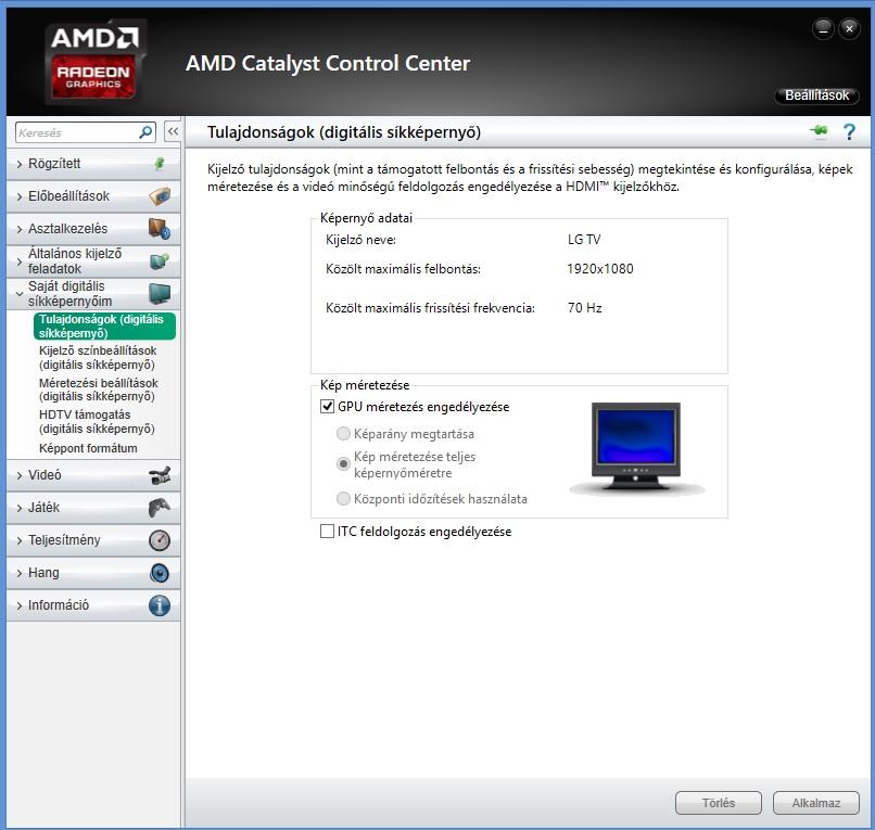 Láttam már korábbi hozzászólásban, hogy a catalystban kéne keresni valami opciót, de nem igazán engedi beállítani. 1920x1080 beállításon illetve 1776x1000 próbáltam, mindig ugyanez a helyzet. (ez utóbbinál számomra jobb képet ad.) HDMI kábellel van összekötve egy Gigabyte 6950OC-vel.
