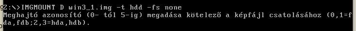 DosBox-X-et használnék egy win3.1 rendszer virtual futtatásához, parancsnak a lentit írtam be, de problémát írja hogy a meghajtó azonosító megadás kötelező a képfájlt csatolásához.