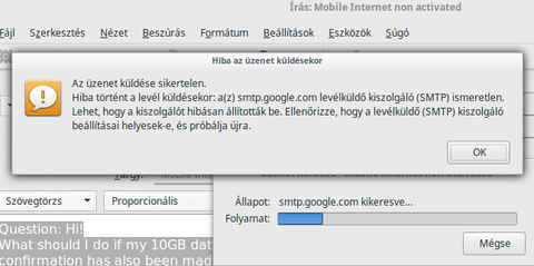 Segíjjetel léci! Nem használtam soha levelező programot, gmailen keresztül elvoltam, de most egy hülye levelezős help felület szivat és csal a Thunderbolt-on keresztül akarja küldeni az üzenetet. Végül kimásoltam az email címet, de most már be kéne állítanom ezt a levelezőt is végre. A gmail smtp címének szerintem nem jót írtam be:
