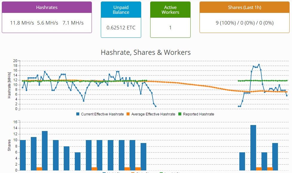 Ethereumot bányászok a ethermine.org-on, és arra lettem figyelmes, hogy tegnapi naptól, kb 13:00-tól eltűntek az un. stale shares-ek, illetve ma reggel 07:50-től az nvidia kártyáim teljesítményéből leesett 1-3Mh/s, a radeonok nem változtak. Újraindítás után ugyanaz maradt. Mi történt?