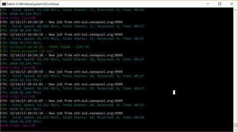 kipróbáltam a jelenlegi kártyámmal (GTX1070) a bányászatot az eu1.ethermine.org pool-on. Az érdekelne, hogy az egyik pillanatban még 0.0109 ETH az egyenlegem, 5 percel később meg 0.0011 ETH. 0.05 ETH-nál van beállítva az utalás, tehát biztos nem ebbe az irányba tűnt el.