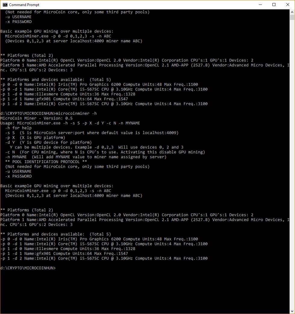 - A külön GPU mineolásra alkalmas exe viszont a gépem újraindítását követően csak ennyit ír ki:MicroCoinMiner.exe -d 0 -p 0
