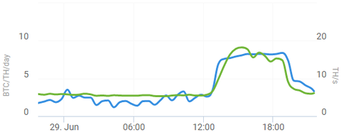 Ilyen nagy kiugrásokat hogyan lehet automatikusan figyelni? Tudom, MultiPoolMiner-el, de nem akarok néhány tíz cent miatt pool-t váltani (tudom, ezt is be lehetne állítani), de jó lenne valami értesítést kapni az ilyenekről. Mert ez nem csak kicsit volt magasabb az átlagnál, hanem bőven 3-4-szeres profittal kecsegtetett, mint egyébként mostanság.