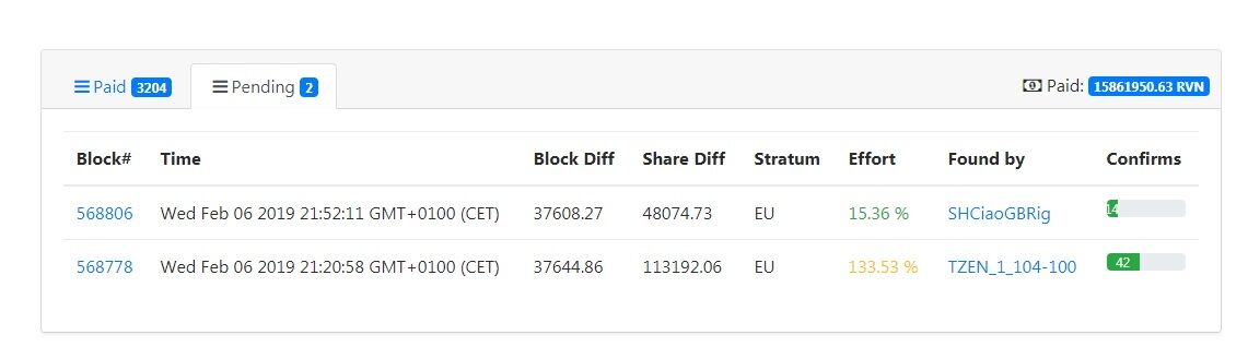 Sziasztok, egy "érdekes" dolgot tapasztaltam, az adott poolon jellemzően kb. 15 GH/s a hash, azonban időnként megugrik a hash kb. 70-80 GH/s-ra, és éppen akkor amikor blokkot talál a pool. Pár napja kezdődtek ezek a tüskék a poolon, de csak most tűnt fel az időben egybe esés a blokkal. Kb. 20 percig van az a tüske (éppen amikor beesik a blokk), aztán elmegy a nagy hash (lehet másik poolba?), majd újból visszatér, megint akkor amikor jön a blokk. Ki lehet azt deríteni valahogy, hogy mikor talál a pool blokkot???? ...feltűnően egybeesik a nagy hash megjelenése és a blokk találása. Persze így éppen "lenyúlja" a blokkonkénti 5000 RVN nagy részét....