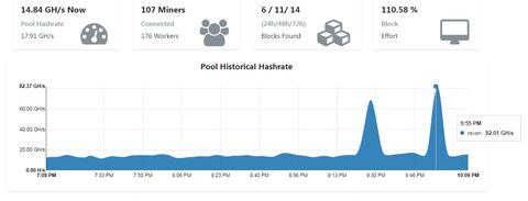 Valszeg csak a szokásos: a nicehash járkál ki/be. Minél nagyobb a hash annál nagyobb eséllyel jön a blokk.