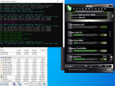 Egy kis segitseget szeretnek kerni. Adott egy vadi uj MSI Armor RX580 8GB OC kartya es egy olyan bajom van vele mikor elinditom a phoenixminer-t (5.5.c) a DAG file utan mikor elkezd banyaszni 110W fogyasztast merek es hiaba van beallitva az afterburnerben a sajat profile akkor is ez az emelkedett fogyasztas tapasztalhato. Viszont ha pl. a core feszultseget lefele vagy felvele allitom (es,vagy) a core clock-ot is majd par masodperc mulva ismet a sajat profilom teszem vissza akkor a fogyasztas beall a kivant 89 wattra.