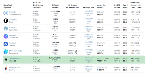 A Whattomine-on vagy 6 coin van az ETH előtt.