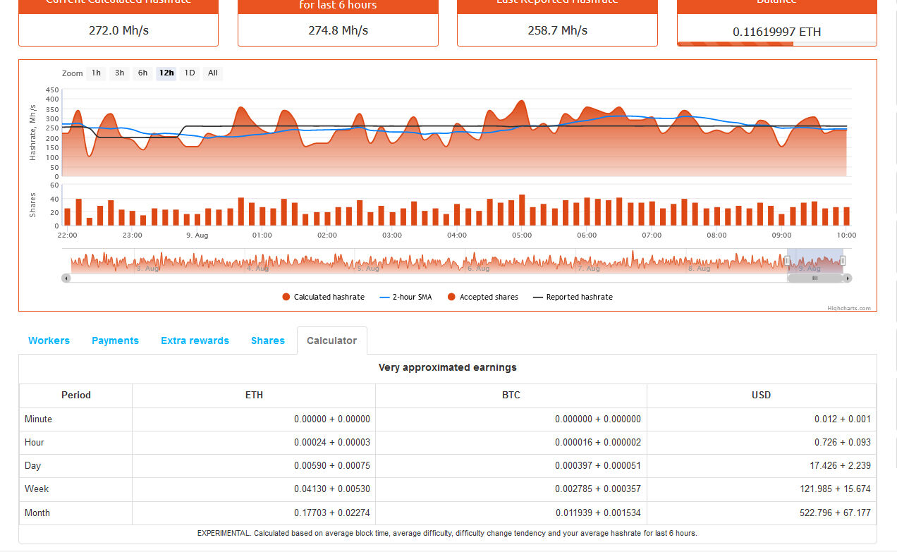 Viszont új a calculátor, és megjelent egy Reward fül, amit szerintem napi szinten fogunk kapni. Első nap után nekem az 600Ft-ot adott.De most a Calculator is 600$ körül és 0,2Eth körül mutat megint. Szóval visszaállt a London előtti profit. (Eddig) (hétvégén 0,17-eket írt már a végén)