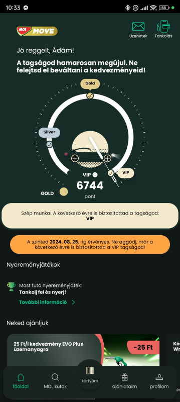 Viszont három hónapja nem igazán gyűlt új pont, mert kolléga autójával járunk és ő is nekiállt pontokat gyűjteni, én meg csak fizetem a tankolás felét. De lassan lejár a mandátuma, utána újra felváltva járunk majd