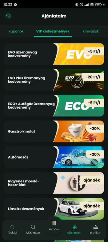 5 Ft simára, 20 Ft Evo Plusra. Valamint állandó 20% kedvezmény mosásra és gasztro termékekre, negyedévente ajándék meleg étel, vagy hotdog.