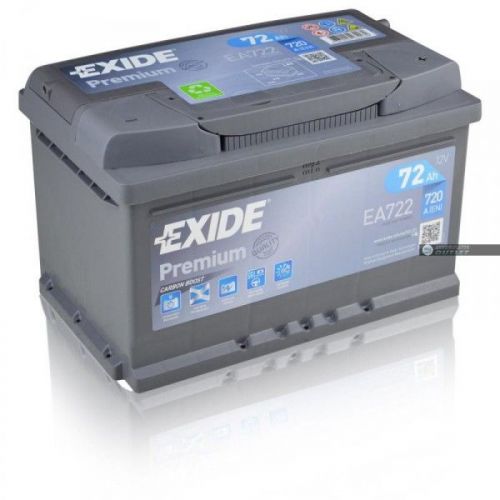 "EA 722 12V 72Ah/720EN Exide Premium típus egyidejűleg biztosít nagy energiasűrűséget, magas kapacitásértéket és nagy indítóáramot, mindezeket egy akkumulátorban. Magas indítási teljesítmény és megbízhatóság jellemzi, minden időjárási körülmények között. Nagy teljesítményű diesel és benzines motorokhoz. Magasfokú és luxus felszereltségű (gyári alap + opcionális kiegészítő) gépjárművekhez. Mindennapi használatnál "indul és megáll" üzemmódban is. (+30%) indítási teljesítmény a hagyományos akkumulátorokkal összevetve. Az EXIDE által szabadalmaztatott labirint rendszer, mely megakadályozza a sav kilépését. Abszolút karbantartásmentes, varázsszemes kivitel. Az akkumulátor fedele hegesztett dupla fedél. Eleget tesz az "Original Part Matching Quality" minősítésnek (eredeti beszállítói minőség)."