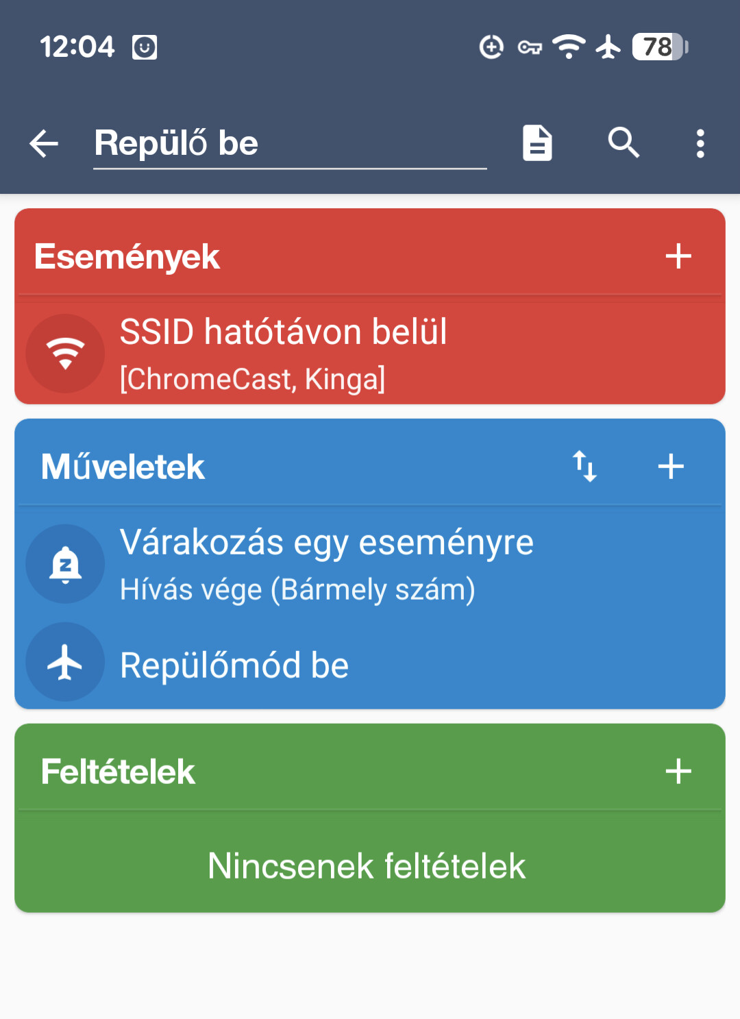 A Macrodroidnál a következőket adtam meg:
