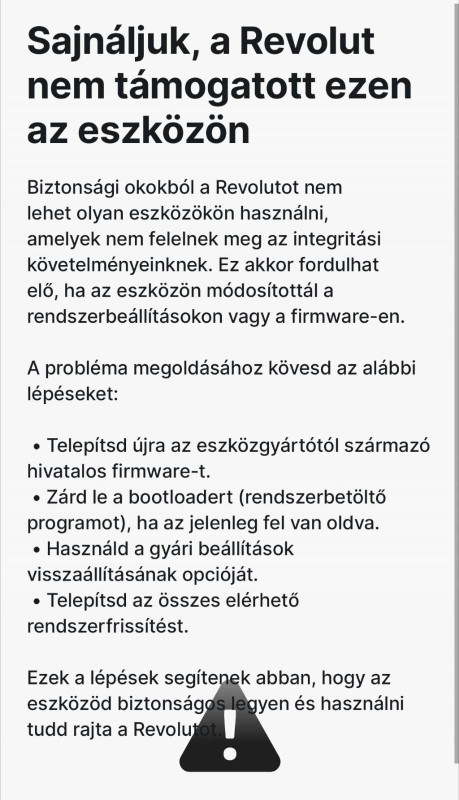 Nálam is megállt a Revolut, pedig már csak a bootloader nyitott, nincs se Magisk, se semmi root...
