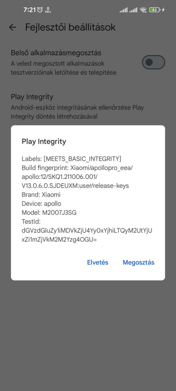 Csekkolom a play integrity appot, voros minden.. mondom mi van ???