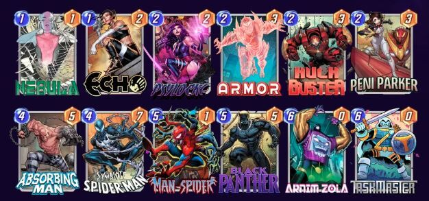 Most ez a main paklim: [kép] Szerintem elég sztenderd pakli, gondolom nincs benne meglepetés nektek. Tök szeretem benne azt, hogy ha nem is igazán jönnek a lapok a meccs elején. Azért van benne egy "menekülő" potenciál, ami már sokszor kihúzott győztesként a meccsből. Amikor lemegy Wong, és Black Panther, és rájuk nyomom Zola-t. Először féltem, hogy ha Zola Wong-ot destroy-olja először, akkor BP-t már nem viszi át máshova. De szerencsére nem. Mondjuk logikus is, mert a lap letételekor aktiválódik a dupla reveal. Csak tapasztalnom kellett, hogy biztos így van e.