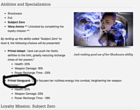 A Shockwave nem exkluzív a Vanguard classhoz azt kaphatja Adept és Vanguard is. A Biotic charge az, anélkül nincs Vanguard. Shepard kivételével egyik karakter sem volt igazán saját "classba" sorolva, csak sejteni lehetett ki micsoda Ashley/Kaidan kivételével. Sztori alapján Jack adept. A dossziéban is csak annyi van, hogy nagyon erős biotikus [link] "Jack is rumored to be the most powerful human biotic ever encountered." tehát inkább Adept.
