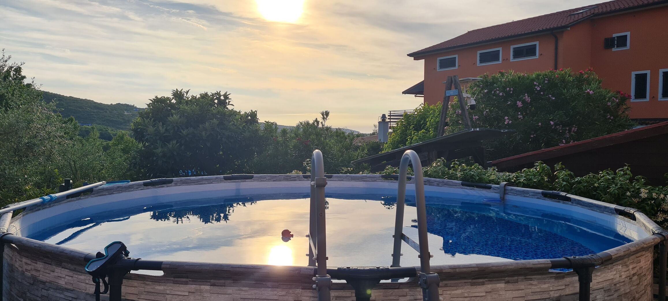 (nem szabad olyan medencet vasarolni aminek vilagos a belseje, mert nagyon latszik a vizcsik ) -
