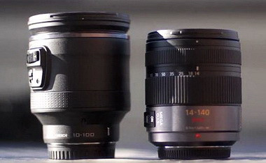 Még az Oly-hoz képest nagyra és nehézre megépített 14-140 is egész kis szerény a Nikon 10-100 mellett.