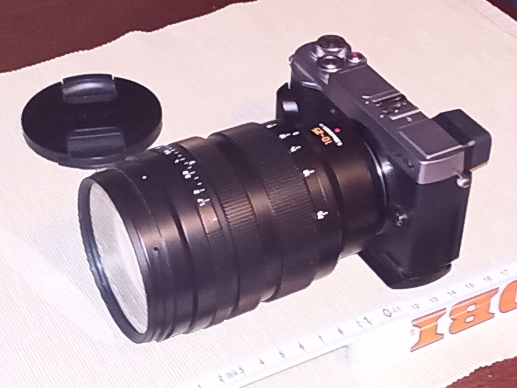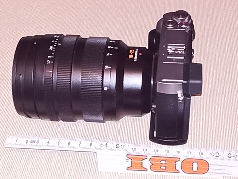 Szerintem ez az em10. Ha - képzeletben - leveszed róla a keresőt és oldalról úgy 10mm-t akkor nagyjából meg is kapod a GF7-et.Ilyen kis vázakhoz ez a 12-100 f4, 12-200, egésznapos használat mellett már lehet kényelmetlenül nagy.
