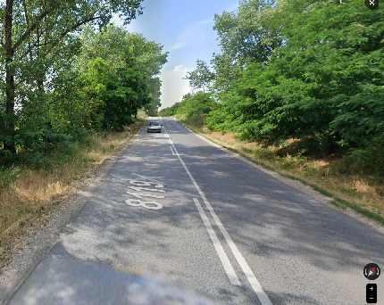 Teljesen beláthatatlan pozícióból vágott neki, nagyjából innen. A trakesz meg kb. a feloldótáblánál volt. Köztük 2 autó.