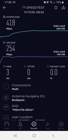 WiFi-n mit tud?Nagyobb netem lett (Vodafone 1GB) és a hAP ac2 WiFin "csak" 300MB-ig jut kb. Szeretném azért, ha WiFin is menne az 1GB közeli.