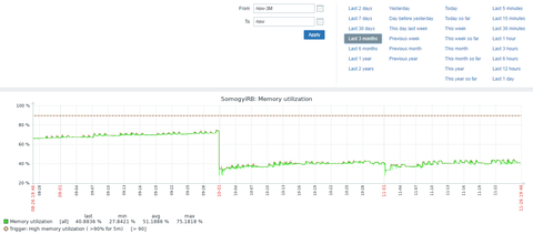 itt látszik, hogy a 7.5-re (majd 7.6-ra) frissítés előtt folyamatosan indokolatlanul emelkedett a memóriahasználat, azóta viszont kb egy szinten stagnál.