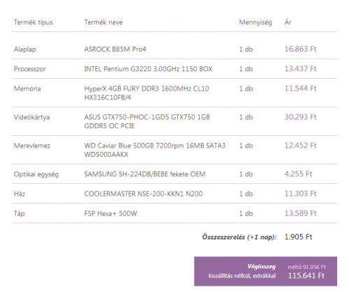 Ismerősöm kért meg, hogy segítsek neki összeállítani egy gépet. Előző masinája "kuka", nem marad meg semmi belőle. Az alábbi konfigurációt állítottam össze: