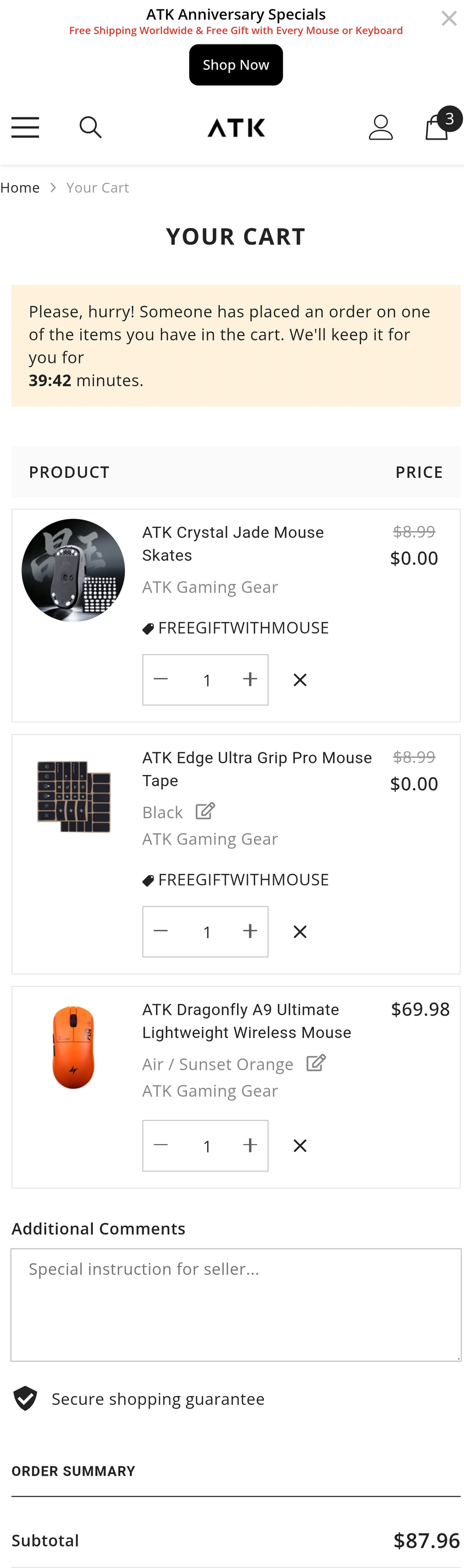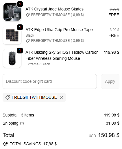 Anniy, hogy a ATK Anniversary Specials megteveszto kicsit, mert VAGY ingyen szallitast kapsz VAGY ket ajandekot... de nekem mivel nincs szuksegem az extra talpakra, inkabb az ingyen szallitast kertem (a 31$ dollaros Express helyett).