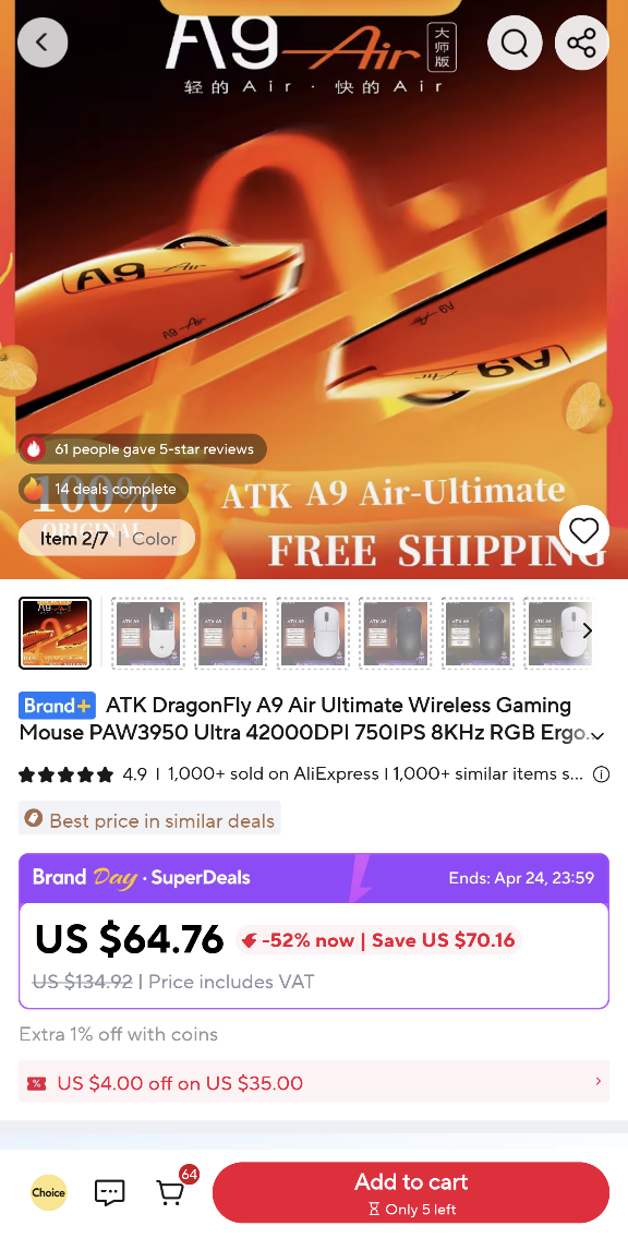 ATK-tól rendeltem VXE DragonFly V3 Pro-t. április 14.-én