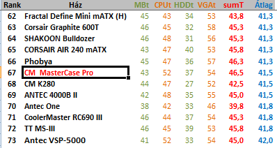 15-20 ezres CPU bordával ésTwinFrozr vagy Asus Strix VGA hűtéssel persze hogy elfogadhatóak a hőfokok, de mondom, ettől még egy gyengén hűtő ház. Melegedő alkatrészeket nyáron 33 fokos szobában már kevésbé tudna kordában tartani.