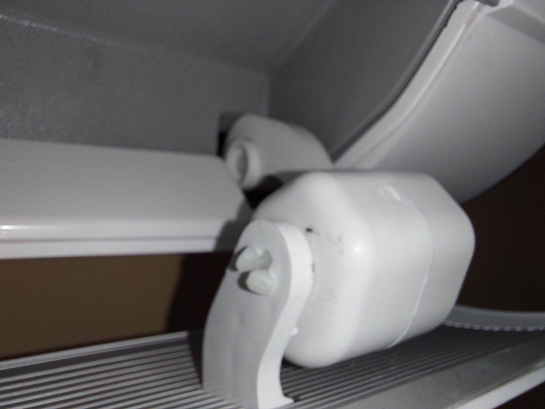Nem tudjátok véletlen, hogy hogyan lehet ezt kiakasztani? Leakarom venni a beltéri egységről a műanyag burkolatot és a lapát útban van, de nem tudom, hogyan lehetne ezt kipattintani. Összenyomni nem lehet a kis fehér pöcköt, mert középen nem üreges. [kép] -