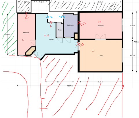 A másik lehetőség az ottani hálószoba ablaka fölötti hely, ahol max 1db-ot tudnék elhelyezni. Ezzel az járna együtt, hogy akkor oda egy 4es multi kellene, és a most felújított lakásomat újra szét kellene barmolni, hogy odavezessem az összes csövet a lakás másik végéből. Ezen kívül a kondenzvíz elvezetését is meg kellene oldani valahogy.Egyébként a jelölt beltérik és kültérik helyei már adottak, be van csövezve, vakolva, festve, sőt, azóta be is költöztünk, úgyhogy többszörösen nem örülnék egy ilyen fordulatnak.