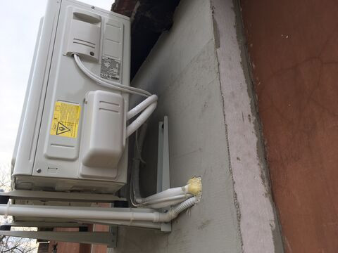 A kondenzcső kifelé-lefelé lejt, csak csalóka a kép.A kültérit nem rakatom a földre, annyira azért nem életveszélyesen zavaró