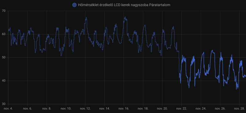Korábban is volt szó a fürdőszoba párásodásáról, amit sosem értettem. Ezért párszor megmértem zuhanyozás előtt és után, 2% volt a legnagyobb változás: 51-ről 53-ra. A hőmérséklet hasonlóan változott, leginkább a cirkó jóvoltából. Tehát még mindig értetlenül nézek ki a fejemből.