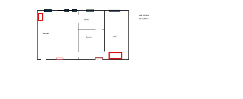 egyetértek feco véleményével, ide biza minimum 2klíma kell majd és a fürdő is csak akkor kap némi meleget ha szemben van az ajtaja valamelyik szobával ugyanis a két szobába kellene tenni 1-1 beltérit minimum