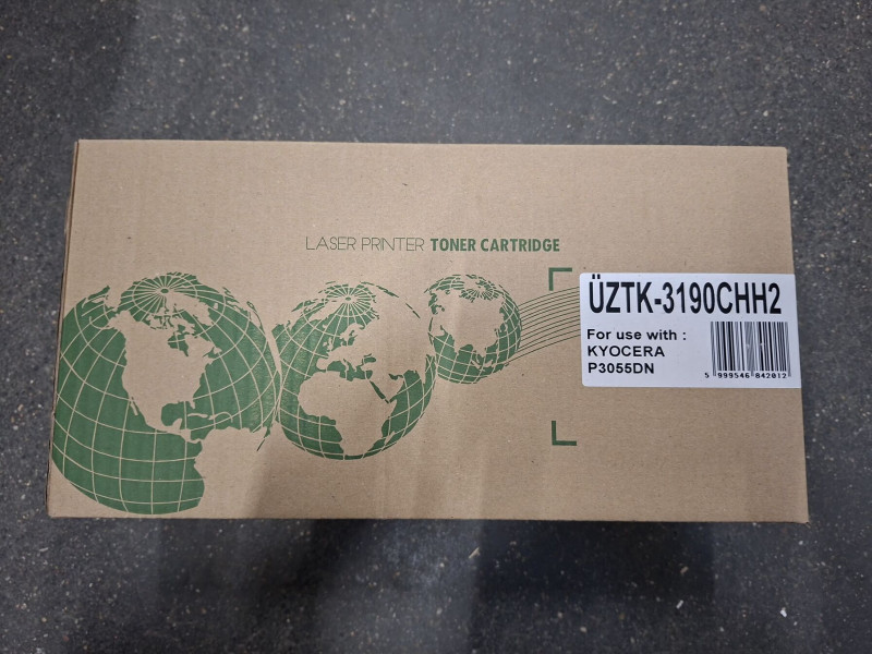 Egy eredeti Kyocera toner (a csomagolás minden oldalán) büszkén hirdeti magáról, hogy az egy Kyocera toner.