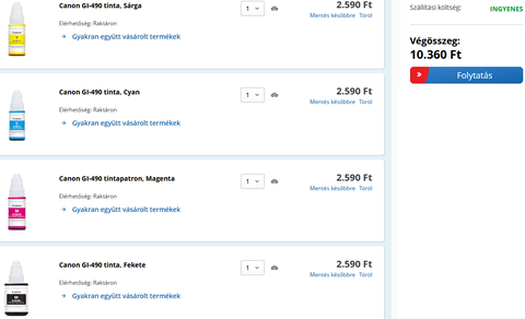 Árukeresőbe beírva a "HP Color Laser MFP 178nwg" kifejezést, 3 színes toner darabja 24.000 Ft, és csak 700 oldalra elegendő, a fekete 22.000 Ft, 1000 oldalra elegendő.