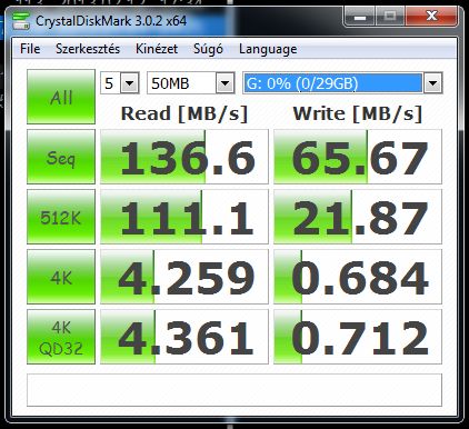 • Pendrive irás-olvasás sebesség