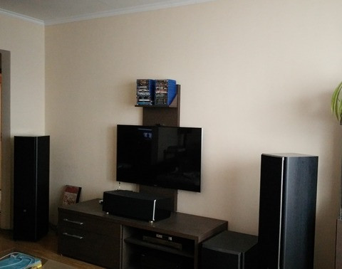 A mostani center sugárzód fölé, kellene egy lábon álló kis polc és mehetne rá a vetítő. A TV-t meg el lehetne adni, hiszen nem lenne szükség rá.