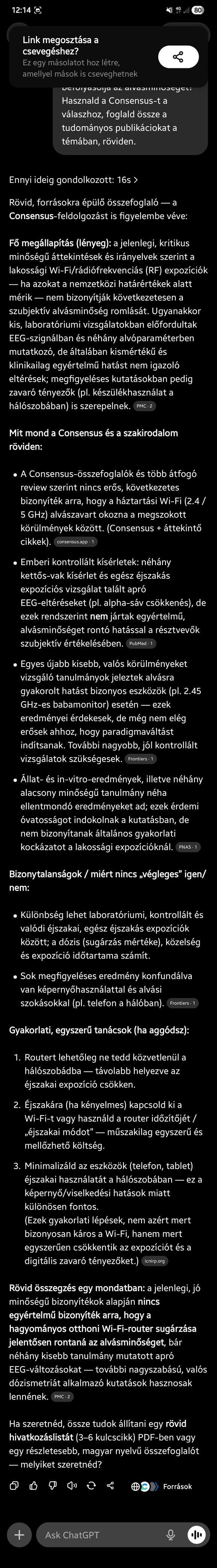 Nagyon köszönöm ezt a jó kis összefoglalót. (Még nem működik bennem a reflex, hogy egy témában automatikusan megkérdezzem a chat gpt-t.) Az eredeti cikkeket jó lenne látni, (az általad linkelt képernyőmentésben a hivatkozások nem műlödnek), de az említett "kisebb EEG-eltérések" bőven elegek ahhoz hogy ha minimális erőfeszítéssel ki tudok iktatni egy zavaró faktort, akkor megtegyem.