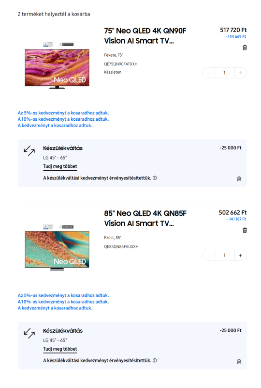 esetleg most még az ára miatt Samsung 85" Qn85F (502ezer).Átnéztem mindent,de nem tudok dönteni