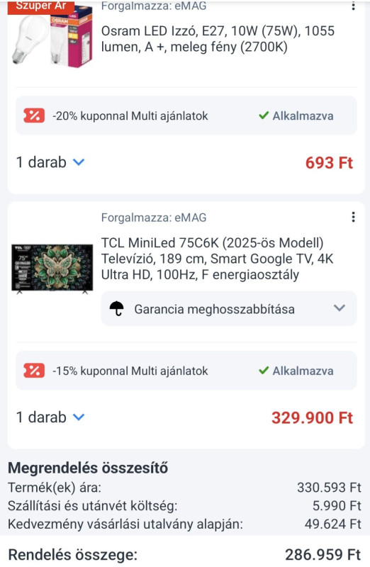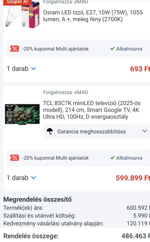 Törpölök az Emag-os akción, ugye itt linkeltétek, hogy TCL 65C7K 278.000+ ft-ba megáll. No, de az 5 év gari itt érvényesíthető, vagy 3 jár? Emag megbizható még, mintha olvastam volna valami rém/álhírt, hogy az Emag is megszűnik, vagy valami ilyesmi?