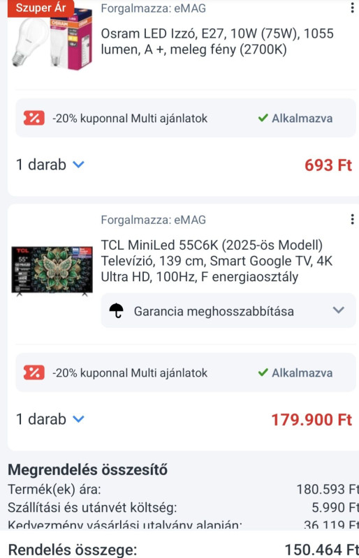 Aki dec 19-e után rendelt az EMAG-on ElektroHétvége akcióban (valamilyen kiegészítő kütyüvel) TCL TV-t, azok közül valaki esetleg megkapta már a TV-t?