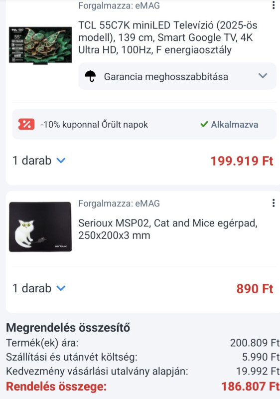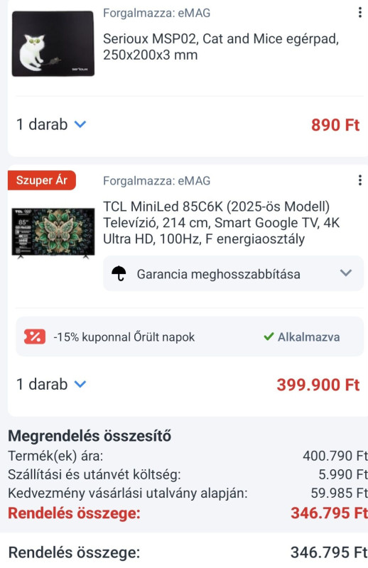 hát ha sikerülne megtalálni a Rainman által írt 320e-be kerülő 75qned92A6-ot, akkor 40e-el olcsóbb mint a 360e-be kerülő TCL 75C7K..