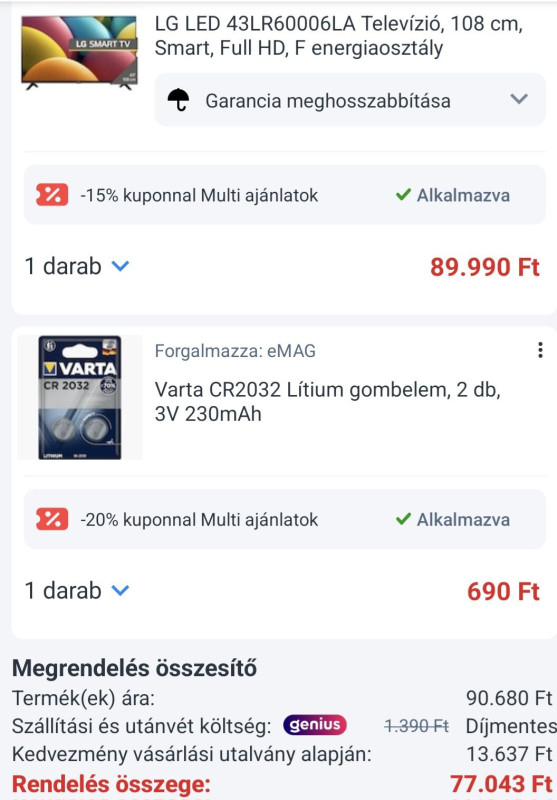Tehát akinek fontos az 5 év gari, annak még ezzel a 20%-os MM akcióval is inkább a Telekomnál éri meg megvenni.