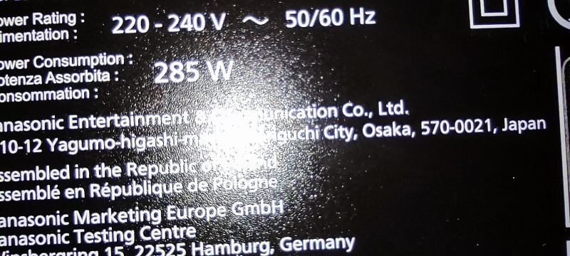 Nagy nehezen lefényképeztem a tv hátulján a kis címkét ,mert már fel van szerelve állványra és nem nagyon férek hozzá.