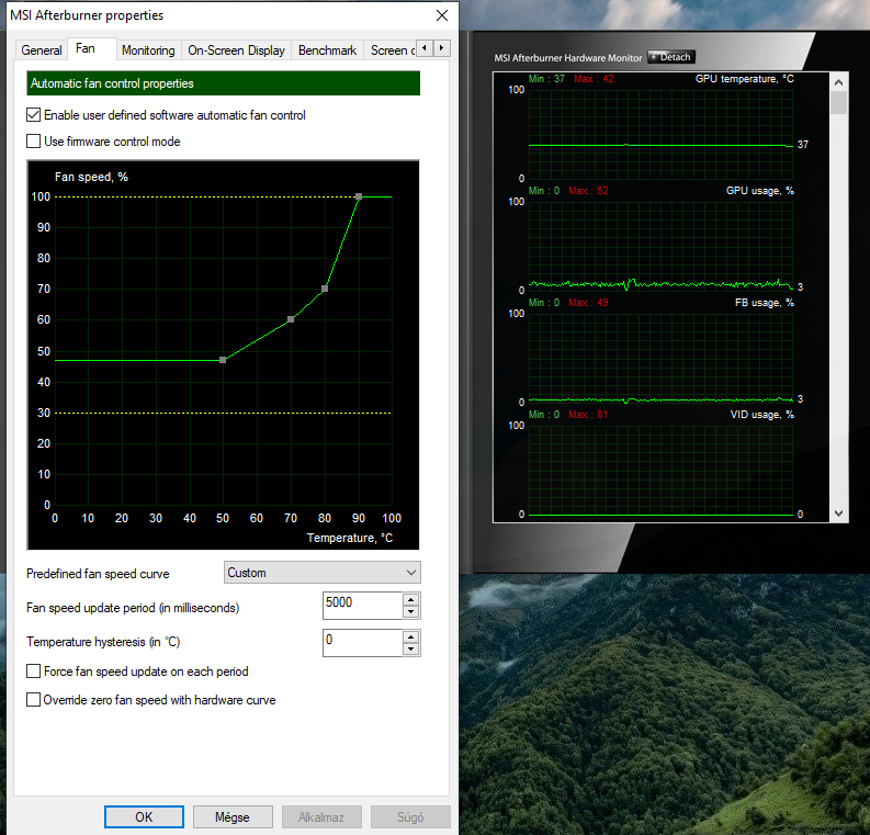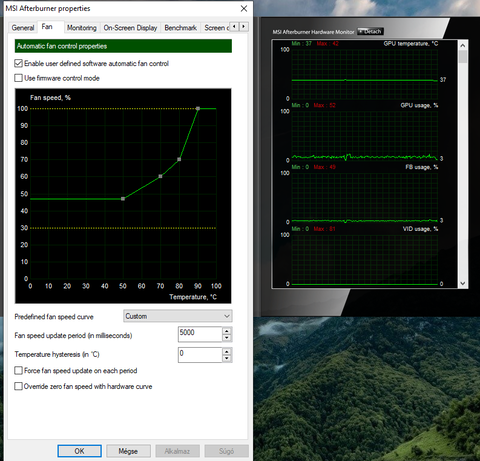 Jó lesz az, de javaslom a ventik manuális beállítását, bár ezt mindegyik kártya esetében szoktam ajánlani. Érdemes a gyári mellé egy olyan profilt is létrehozni, amelyik nem állítja le terhelésnél a ventiket, két katt játék előtt és kész. Aztán még a hab a tortán némi kis undervolt, ami szintén megéri nagyon.