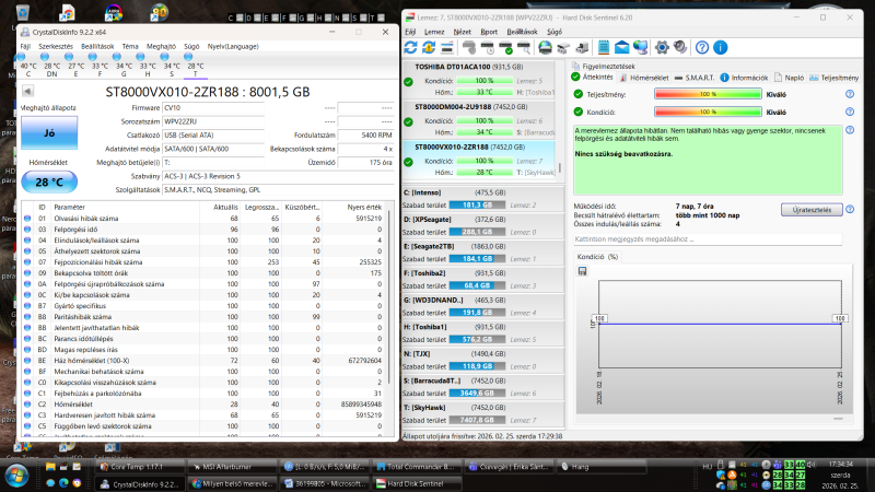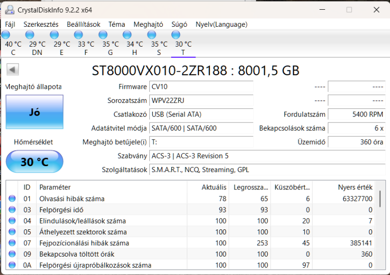 Friss helyzetjelentés, SkyHawk/5400RPm 8TB - immár nem fűtök, már meleg van anélkül is -, 18 fokos szobában, csak a gép tetejére hányva - USB3 to SATA csatolóval . Az SMR Barracuda mégcsak félig van, de az már bizonyított. Szóval a SkyHawk- ról még csak pár torrent megy, de most azt használom, ha valami gond lenne mégis, kiderüljön hamar :